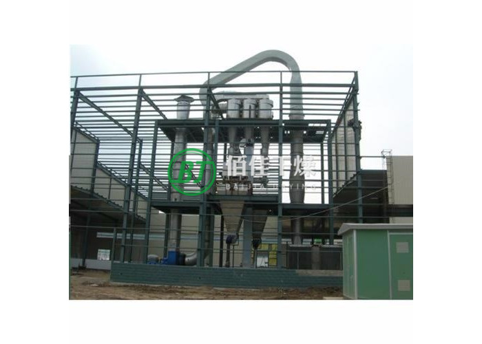 湿物料经输送机与加热后的自然空气同时进入干燥器,二者充分混和,由于热质交换面积大,从而在很短的时间内达到蒸发干燥的目的。干燥后的成品从旋风分离器排出,一小部分飞粉由旋风除尘器或布袋除尘器得到回收利用。